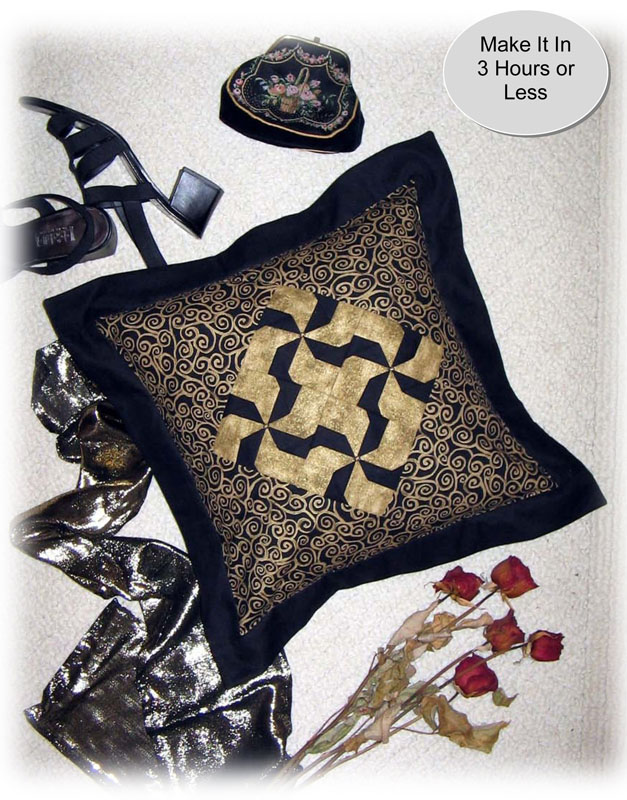 A luxurious, opulent cushion that’s easy to make in a couple of hours. Smart twisted pinwheels are three-dimensional and have a glittering bead centre. The cover is quickly removable for washing and has no zippers. Finished size 20" |