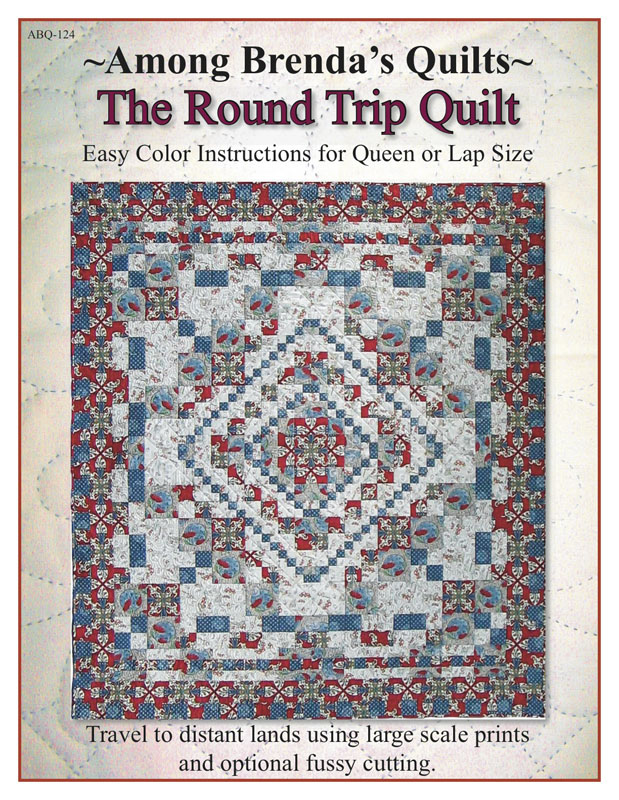 A new quilting journey awaits you with 'The Round Trip Quilt.' Find fabrics that will transport you to China, Australia, France, Japan, Indonesia or Africa. With these full color instructions, you can finish the quilt in either Queen or Lap size traveling to your destination and back again in no time. You'll always have this wonderful quilted souvenir to remember your quilting journey. Pack your bags, this pattern is your ticket to ride. Pattern suitable for intermediate level quilters. In Queen and Laptop sizes: Queen Sized 87" x 99"; Lap Sized 72" x 72" |