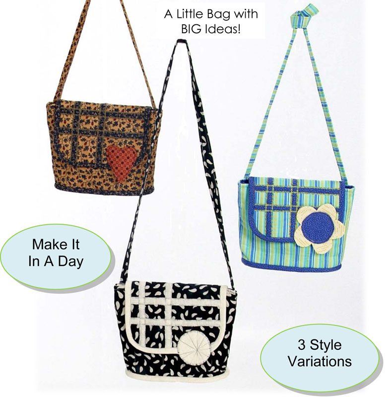 This cute and versatile shoulder bag can be made in a variety of ways to express your individuality. Make the daisy, oriental or country style versions - or make them all. The Bag-ette is the perfect size for your keys, wallet and sunglasses. There are two inner pockets. Lots of illustrations and helpful suggestions make this project a breeze to follow. Suitable for all levels of quilters. Measures 9" x 7 ½" |