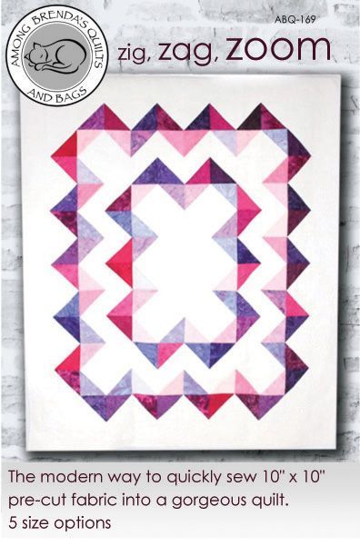 Make modern zigzag blocks in a flash with a speedy technique that uses pre-cut 10" squares. Instructions included for 5 sizes . For any skill level. |