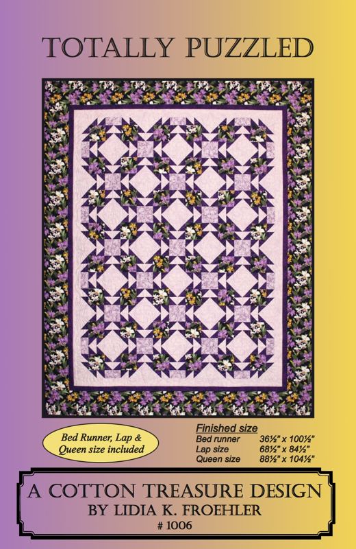 How could one block make such a beautiful quilt? Everyone from beginners to advanced quilters will enjoy piecing this simple block to complete a quilt with an elegant look. Three sizes to choose from: Bed Runner: 36½” x 100½” Large Lap Size 68½” x 84½” Queen Size 88½” x 104½” |