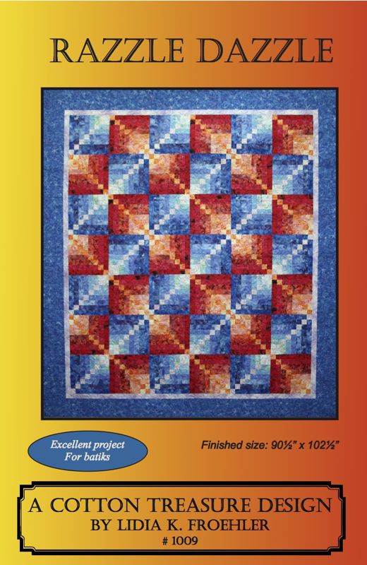 A quick & easy way to use your favourite collection of batiks. Use earth tones for a warm look or bright colors to dazzle. By simply rotating the block you can create a different look. |