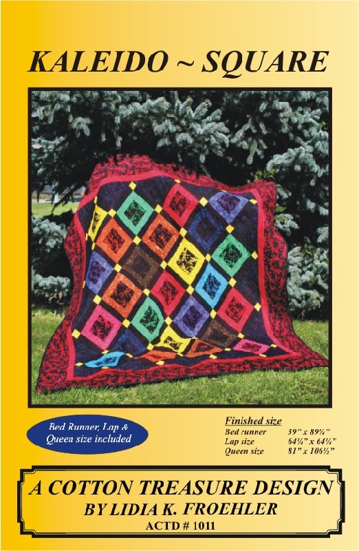 Finished size: Bed runner 39" x 89¾" Lap size 64¼" x 64"¼ Queen size 81" x 106½" This quilt was designed to feature the " Kaleidoscope" collection designed by Shania Sunga for Cantik Batiks and incorporates the full range of colours. Quick and easy to make for beginners or experienced quilters. The size and colour choices are yours to make. |