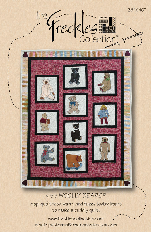 Stitch this collection of wool bears to make a warm and fuzzy quilt. |