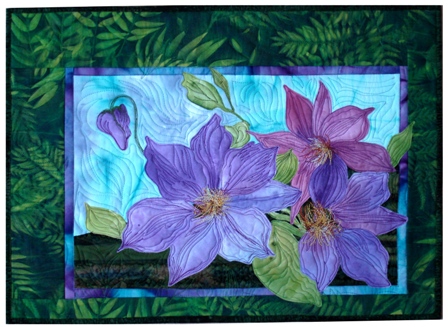Raw Edged applique using Batik fabrics and fun, free motion quilting. Quilting design is included. |