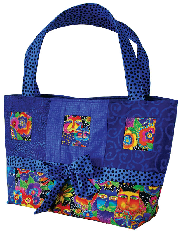 This is a very easy to make tote-style bag. If you have an interesting fabric that you would like to showcase, this is the pattern for you. There are 2 inside pockets and a magnetic snap. |