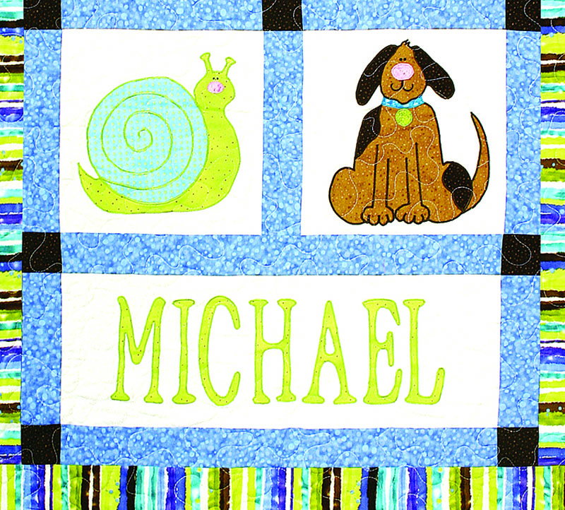 Snails and puppy dogs! Perfect for that new baby boy. The entire full sized alphabet is included with this appliqued