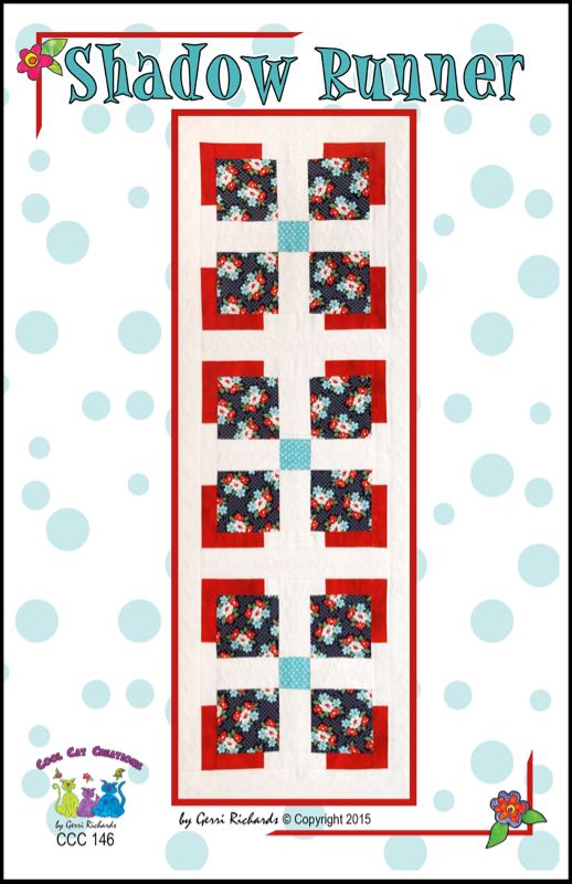 Make this quick and easy runner using fabrics to match each season. The runner is 17" wide x 44" long. The pattern has lots of color illustrations and easy instructions. It is fat quarter friendly. |