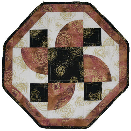 Often asked if there are placemats available for the #131 "Curves and Corners" table runner, the design has been reduced and adapted to create placemats for oblong as well as round tables. |