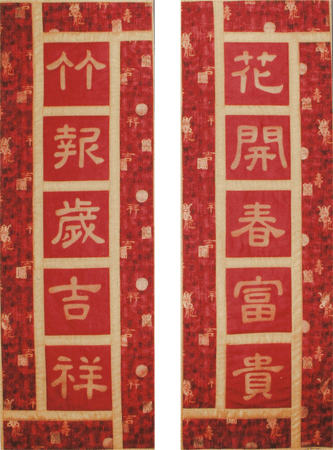 Fused appliqué and easy piecing make this pair of hangings a quick project for Chinese New Year celebrations or all year round.