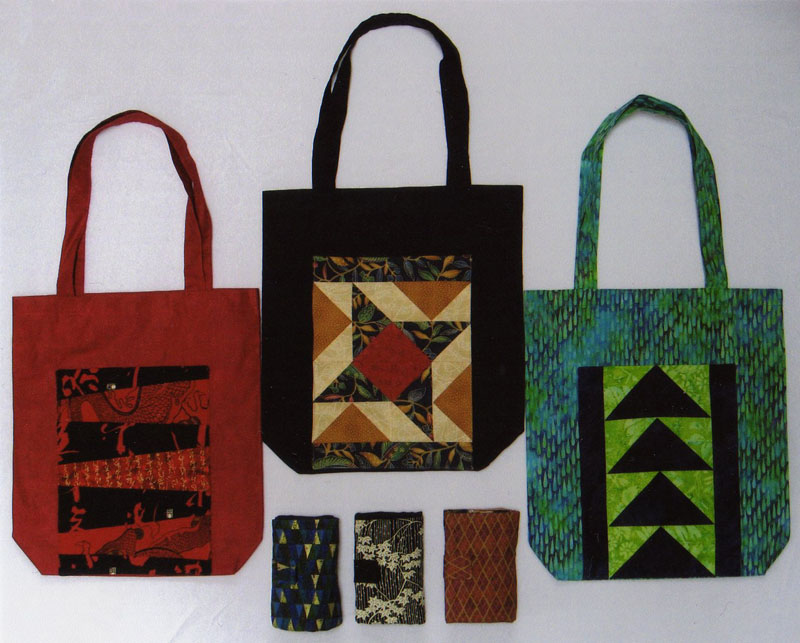 Quick and Easy! A generous front pocket is the place to hide your folded tote when not in use. Ten options and many more ideas for different pocket fronts are included in the pattern for Hide-A-Tote. |