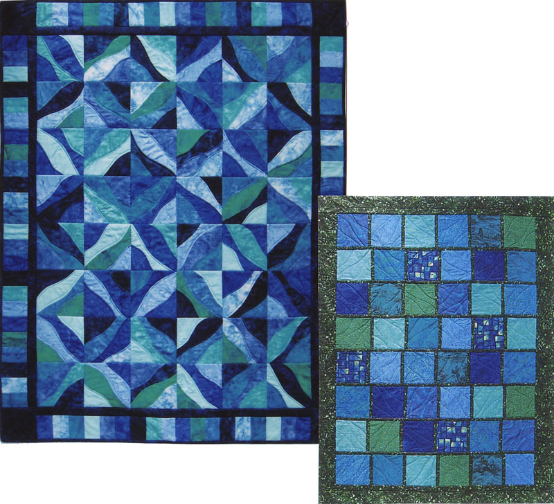 The highlights of Waves are easy free-form curves, no matched up seams, quilt-as-you-go construction, and a double-sided mitered French binding, all sewn by machine, to match the different sides of the quilt. |