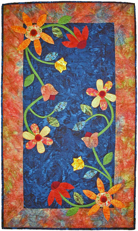 You can have your flower garden in your home all year round! Use the flower shapes in the drawing , or substitute your own. While instructions are provided for hand appliqué, this pattern can be easily adapted to machine appliqué. Full-scale drawing included. |
