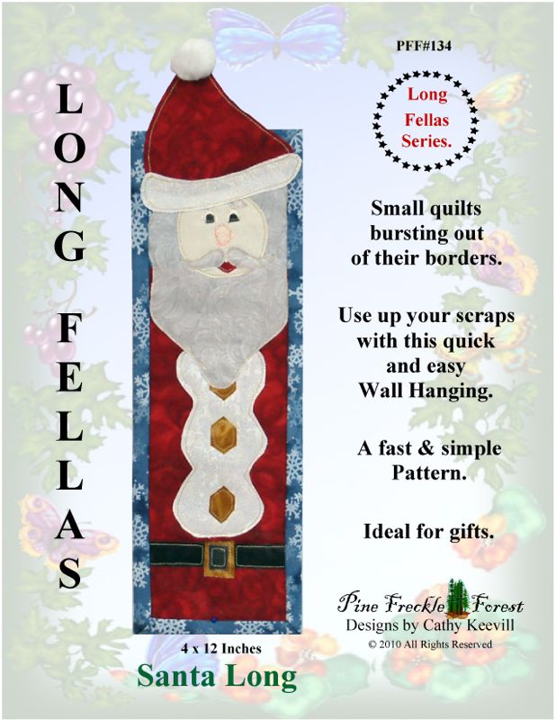 Santa Long is part of the Long Fellas Series. Small quilts bursting out of their borders. Use up your scraps with this quick and easy Wall Hanging. A fast & simple pattern. Ideal for gifts. Finished Size – 4 X 12 inches. |