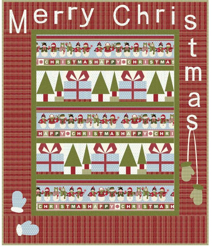 This cute holiday quilt was designed and made with the "Happy Christmas" line of fabrics from Northcott. A cute quilt for a special child! Pieced Quilt: 60" x 71" |
